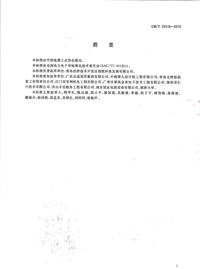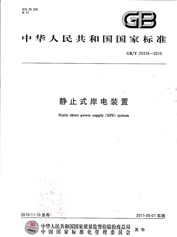 > 創(chuàng)統(tǒng)負責起草制訂GB/T25316《靜止式岸電裝置》